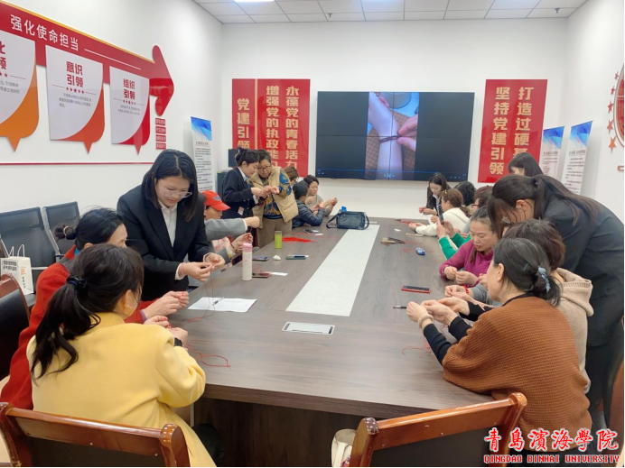 活动伊始,社区志愿者向学员们介绍了红绳编制的由来、特点及历史渊源以及美好寓意。随后,志愿者又耐心地给学员们讲解了编制的制作技巧以及需要注意的细节,并手把手地指导进行制作。