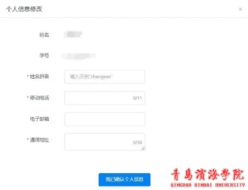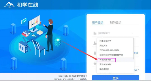 默认学校为“青岛滨海学院”,默认端口为“学生端”登录账号:学号