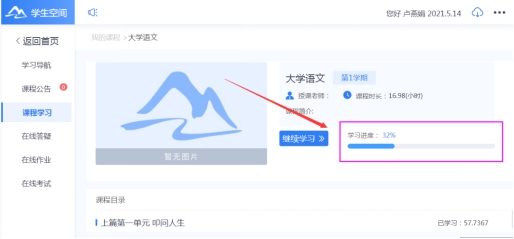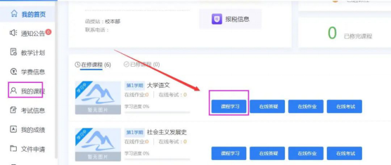 3.点击【课程学习】进入课程学习页面。