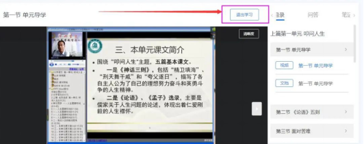 6.视频结束后务必点击【退出学习】,未点击会影响计时。
