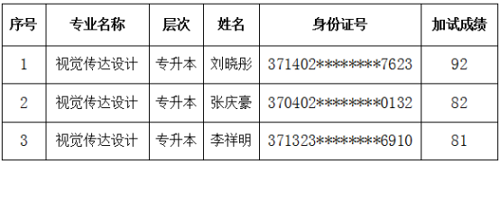 现将2025年报考我校高等学历继续教育艺术类视觉传达设计专业的加试结果公示如下: