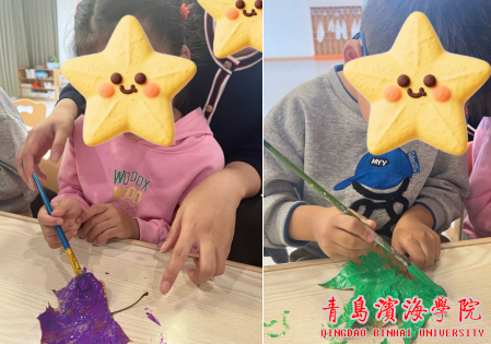 活动从树叶拓印开始。老师们准备了银杏、枫叶等各式树叶,引导学生们挑选、涂抹颜料并细心按压。当一片片叶子的脉络清晰地留在画纸上时,学生们的脸上写满了惊喜。这个过程,不仅让他们直观认识了秋天树叶的多样形态,更在操作中精准锻炼了手部精细动作和专注力。