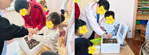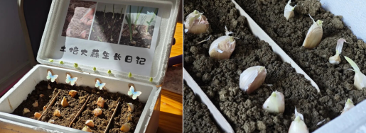 教室一角的泡沫箱里,装满了松软的泥土。孩子们挽起袖子,用刚刚练习过“剥”和“捏”的小手,轻轻地将蒜瓣按进土壤里,再为它们浇上水。
