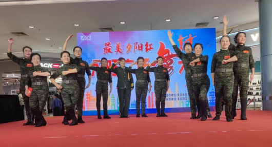 我校老年大学舞蹈队员们身着帅气军装,随着悠扬旋律完成整齐划一的队形变换,举手投足间既有舞蹈艺术的灵动韵律,饱含对生活的热爱与对祖国的敬意,每一个动作都精准到位,每一次转身都饱含情感,赢得评委与观众的阵阵掌声。