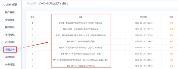 5.在【课程文件】模块下载开题报告、毕业论文的写作说明以及写作模板,学生应认真研读各项附件。