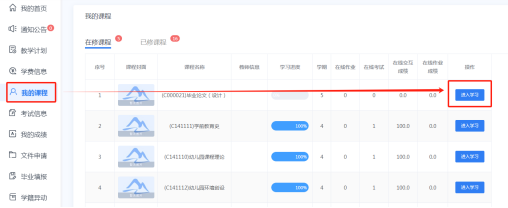 1.登录后点击【我的课程】点击【进入学习】按钮。
