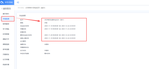 2.点击【毕设信息】了解各项工作时间节点,确保按时提交。