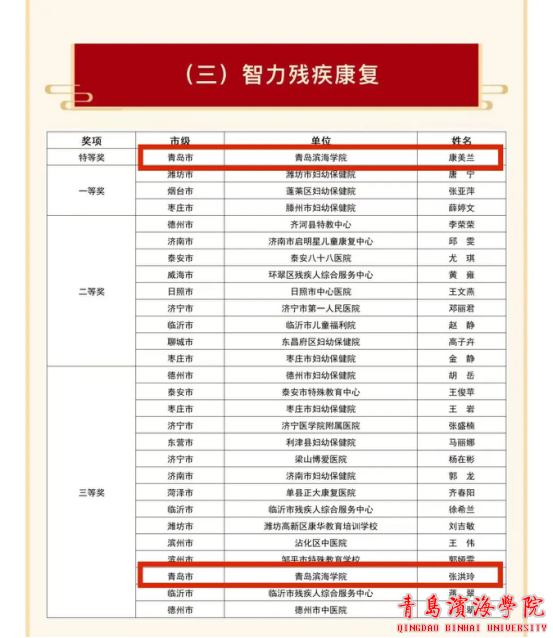 青岛滨海学院特教中心始终牢记“做好特殊儿童服务”与“培养特殊教育优秀人才”两大核心任务。此次大赛的丰硕成果,既是对中心教学教研工作成效的权威肯定,也是迈向新征程的起点。未来,中心将继续深化教师队伍建设,创新人才培养模式,为促进我省乃至全国特殊教育与康复事业的高质量发展贡献更多的“滨海力量”!