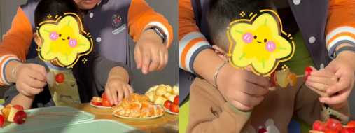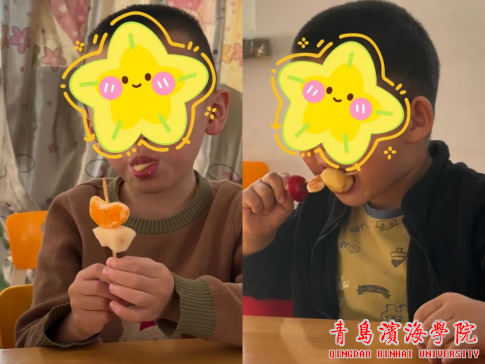 当亲手制作的糖葫芦递到手中,孩子们迫不及待地咬下去—“咔嚓”一声脆响,酸甜的汁水在口中迸发。“吃苹果”“橘橘”“我喜欢香蕉”用有限的词汇努力表达着喜悦,而比味道更珍贵的,是活动中蕴含的多维成长。