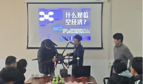 在专业分享环节,几位老师围绕无人机的多元应用场景展开讲解,结合国家未来10年经济发展规划,低空经济的发展以及无人机相关的政策还有国家的经济补贴深入分析了无人机技术在农业植保、物流运输、城市治理等领域的应用潜力与行业机遇。通过实物展示与现场拆解,详细讲解了无人机的核心构成部件,电池供电线,电机控制线,飞控连接线,GPS等工作原理及日常维护要点,让同学们直观了解设备特性。王老师聚焦地面站坐标操作实用技能,从坐标设置、航线规划等基础内容入手,为大家梳理了实操关键步骤;刘老师则结合生活实例,分享了无人机在航拍创作、休闲娱乐、公益救援等方面的生活化应用,让同学们感受到无人机技术与日常生活的紧密联系,进一步认识到无人机作为国家新型行业的发展前景。