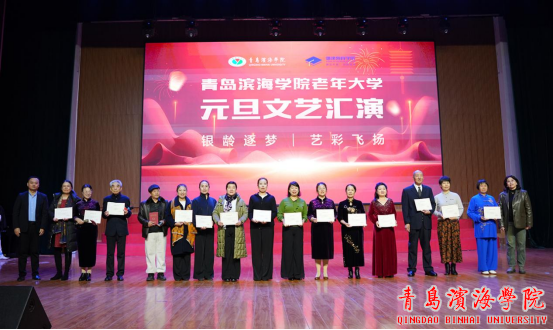 活动最后,全体演职人员、获奖学员与领导、嘉宾一同上台合影,记录下这难忘而美好的瞬间。在温馨和谐、充满希望的氛围中,青岛滨海学院老年大学元旦文艺汇演暨年度庆典圆满落幕。