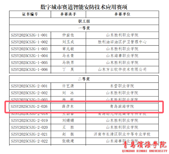 我院薛彦东老师在职工组数字城市赛道智能安防技术应用赛项中表现优异,凭借扎实的专业知识和创新的解决方案,荣获二等奖。数字城市赛道聚焦智能安防技术应用,紧密结合当前城市安全管理的数字化需求,重点考察参赛者在智能监控系统设计、数据分析与预警、应急响应优化等方面的能力。通过模拟真实场景的安防挑战,大赛不仅提升了安防从业者的技术实操水平,还促进了智能安防技术在社区、高校等实际场景中的创新应用。