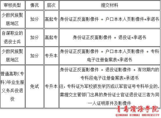 享受政策加分照顾、免试入学的证明材料对照表