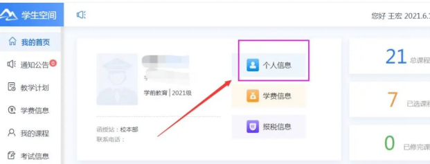 2.个人信息确认成功后点击首页的个人信息。
