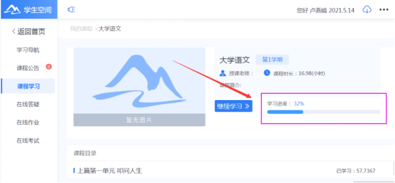 3.点击【课程学习】进入课程学习页面。